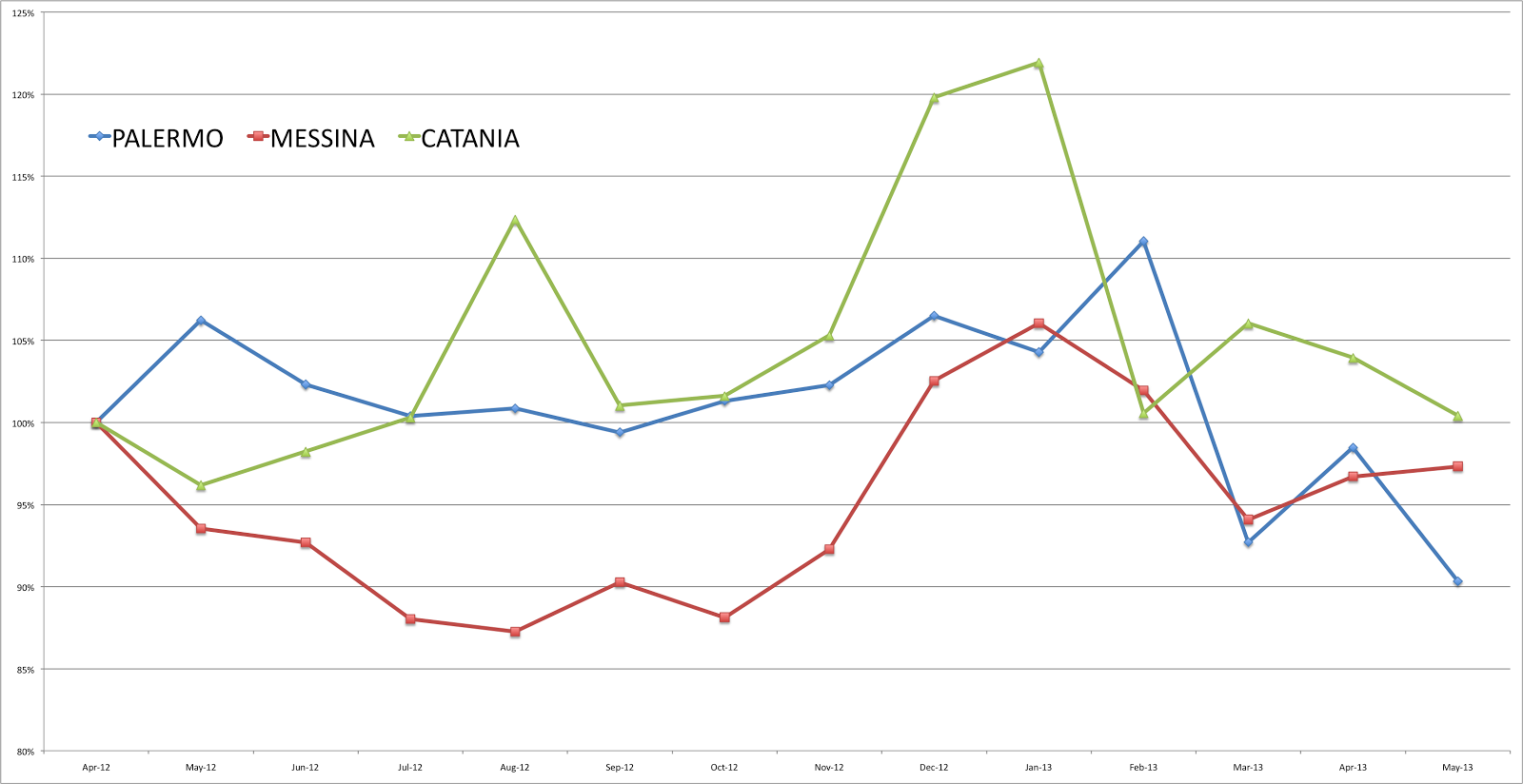 immobili di Palermo a febbraio 2013 al 111% del valore di aprile 2012.